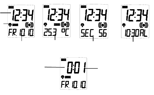 The clock LCD can alternate between the 4 display modes when pressing and the MODE/MIN key: